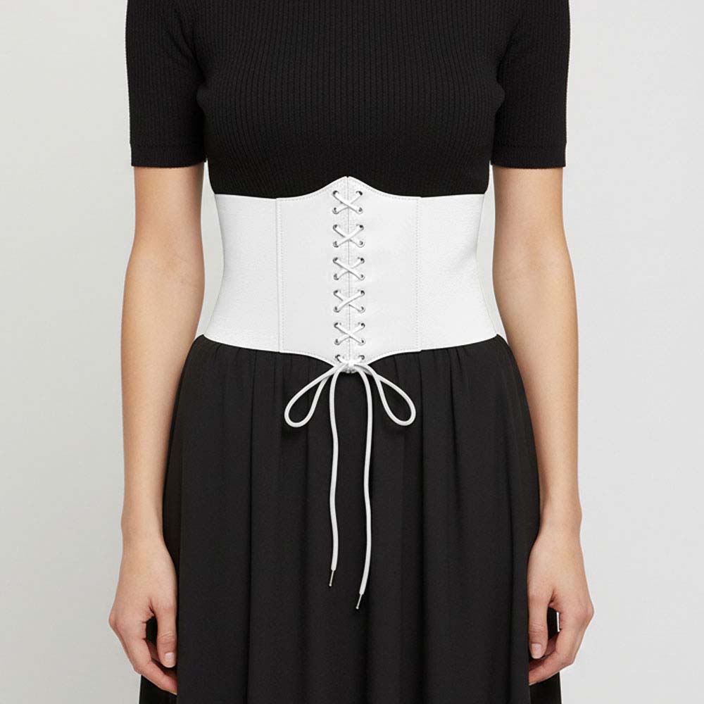 • Elegant waist belt corset featuring a front lace-up design with adjustable tie closure. Perfect for pairing with dresses, shirts, or tunics, this fashion accessory enhances your silhouette while adding a chic and structured touch to any outfit.