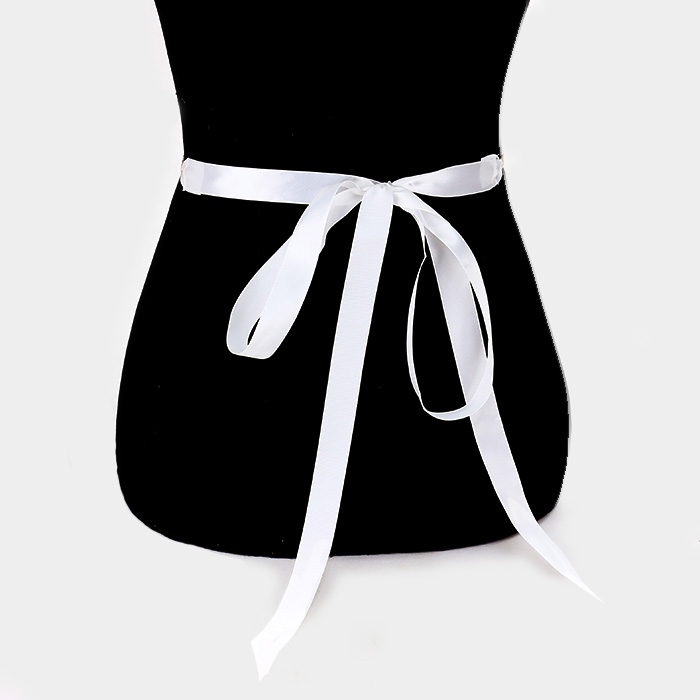Felt Back Flower Centered Sash Ribbon Bridal Wedding Belt / Headband
