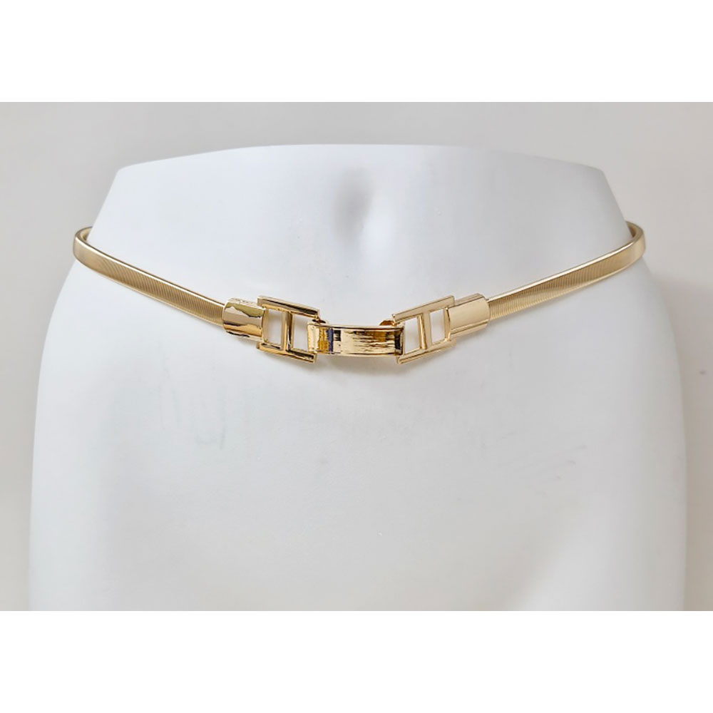 Details • Size : 0.75" H, 28" L • Stretchable • Hook Closure • Enhance your outfit with this modern waist belt featuring a sleek strap and polished geometric centerpiece. Perfect for adding a refined touch to dresses and formalwear, this chic accessory blends elegance with contemporary style, making it ideal for weddings, parties, or evening occasions. • Lead and Nickel Compliant