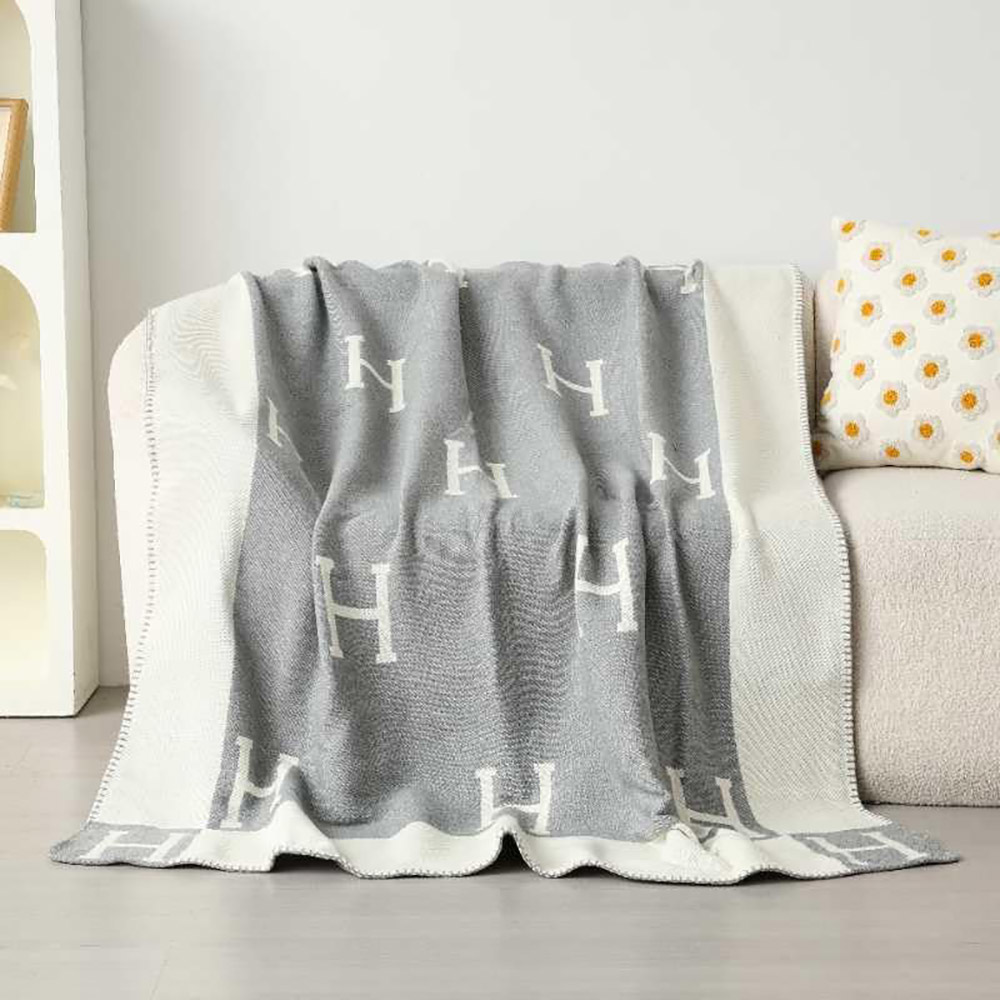 • Add timeless style to your home with this monogrammed border throw blanket in beige. Featuring a bold lettered pattern and contrasting trim, it’s soft, lightweight, and perfect for draping over a sofa or bed. A cozy yet chic accent that blends comfort with modern elegance.