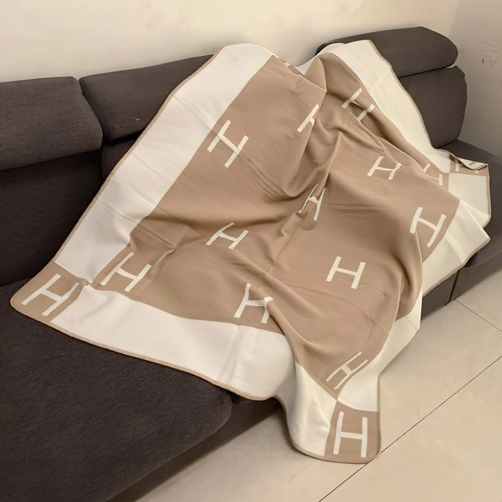 Details • Size : 50" X 60" • Material : 100% Acrylic • Add timeless style to your home with this monogrammed border throw blanket in beige. Featuring a bold lettered pattern and contrasting trim, it’s soft, lightweight, and perfect for draping over a sofa or bed. A cozy yet chic accent that blends comfort with modern elegance.