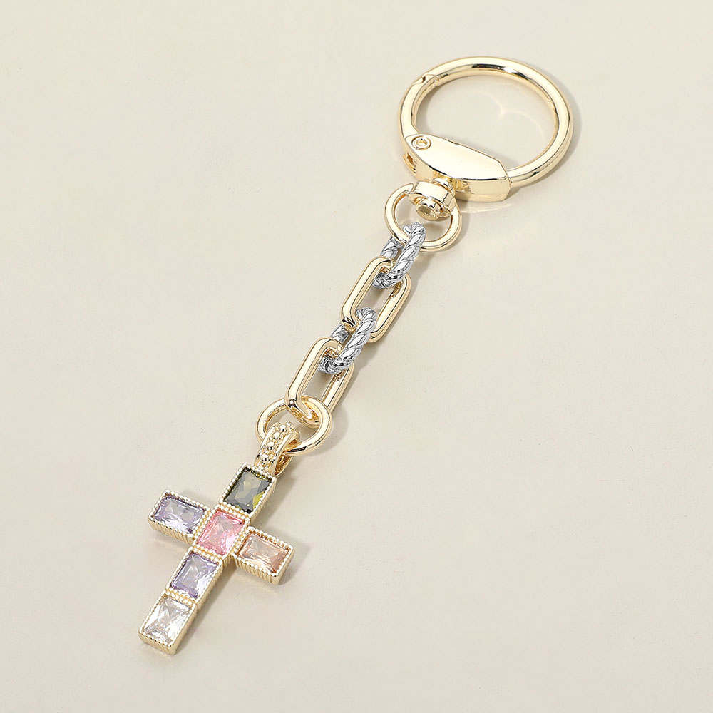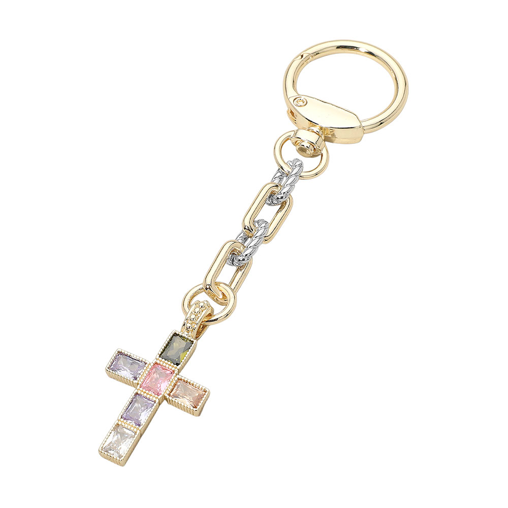 14K Gold Plated Colorful CZ Stone Cross Charm Drop Keychain Bag Charm