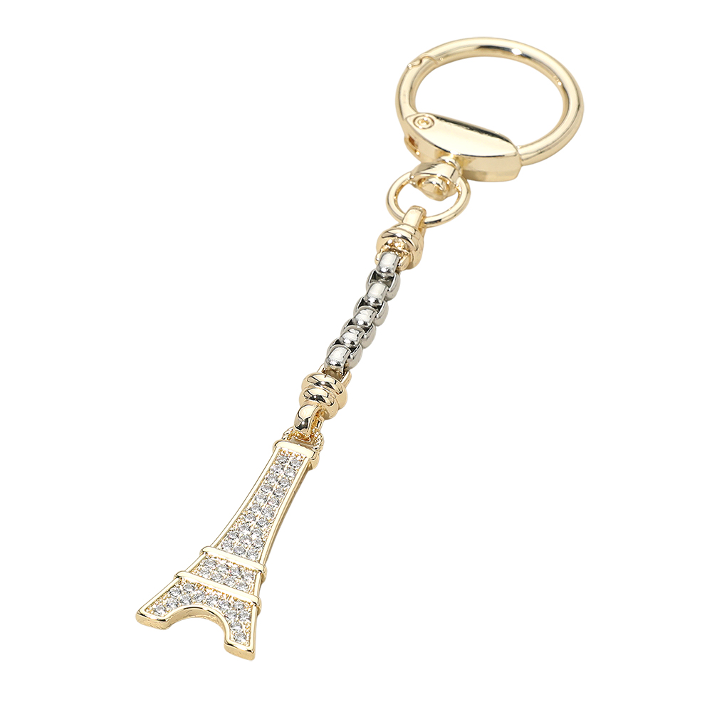 Details • Size : 5" L, 0.7" X 1.5" • Show off travel-inspired style with this Eiffel Tower charm chain keychain featuring a sparkling crystal-accented pendant and sleek linked chain detail. Perfect for keys or accessories, it adds fashionable flair while serving as a charming keepsake ideal for gifting or everyday use. • CZ Cubic Zirconia • Gold Dipped