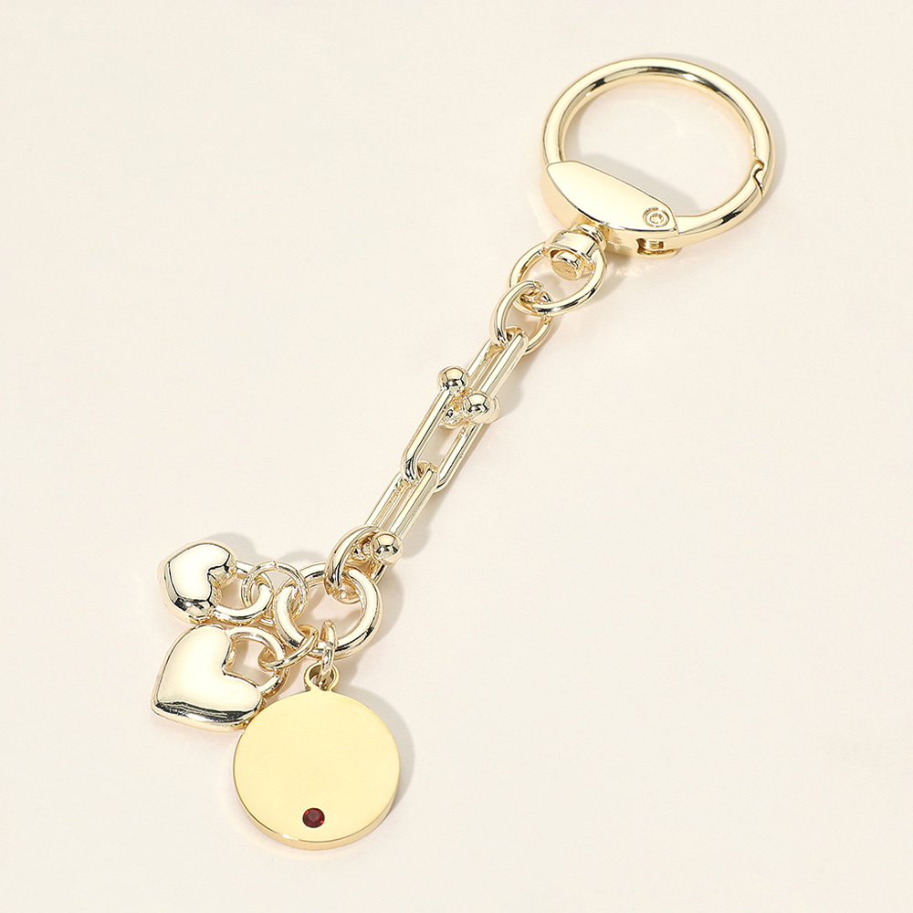 Details • Size : 5" L, 1.1" X 1.5" • Stylish charm keychain featuring a heart accent and a smooth round disc designed for personalization. This versatile accessory adds a meaningful touch to keys, bags, or gifts, making it ideal for everyday use, special occasions, or custom initial engraving. A timeless keepsake that blends function with thoughtful design. • Gold Dipped
