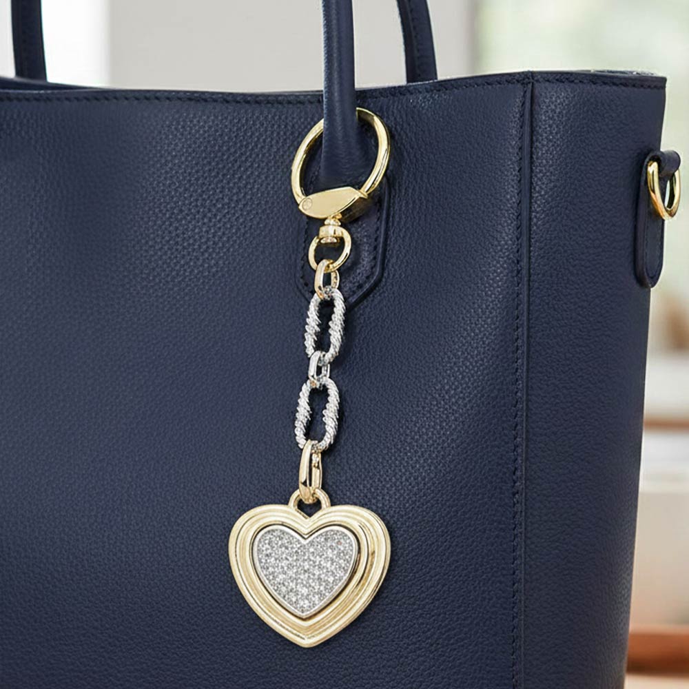 • This elegant heart keychain features a layered heart charm accented with sparkling cz crystal details and a stylish chain link design. Crafted to add a refined touch to keys, bags, or accessories, it offers both decorative appeal and everyday function. A perfect gift-ready accessory that blends charm, durability, and timeless style for daily use or special occasions.