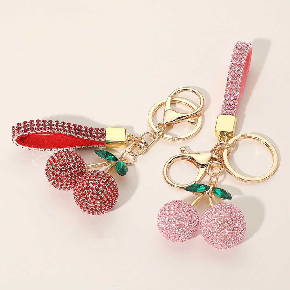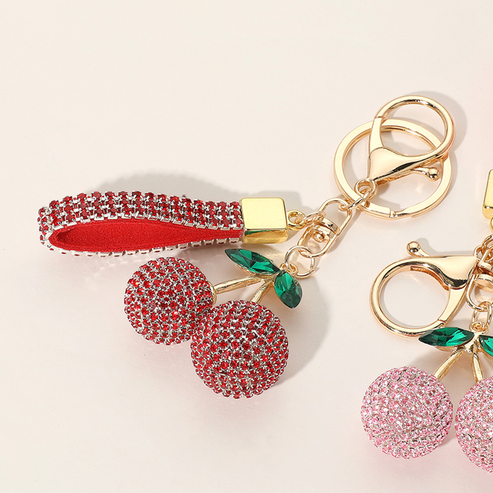 Details • Size : 4.3" L, 1.8" X 3.1" • Fun and fashionable keychain featuring a sparkling cherry charm and a rhinestone-studded wrist strap. Perfect for bags, purses, or as a playful gift for fruit lovers and trendsetters. • Lead and Nickel Compliant
