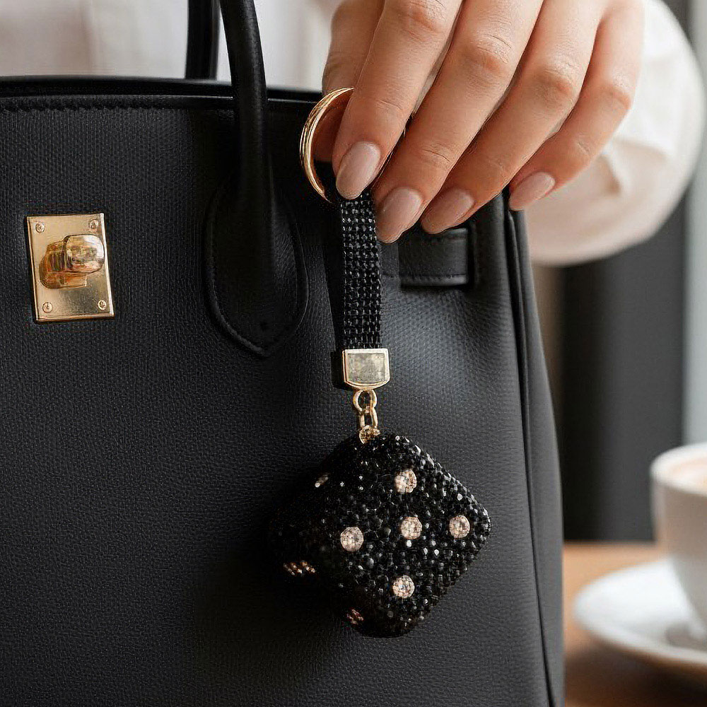 • A chic cube dice charm keychain with faceted sparkle detail that adds a stylish accent to keys, bags, or accessories. Compact yet eye-catching, it’s ideal for everyday use or gifting, combining modern design with a touch of glamour for effortless, polished flair.