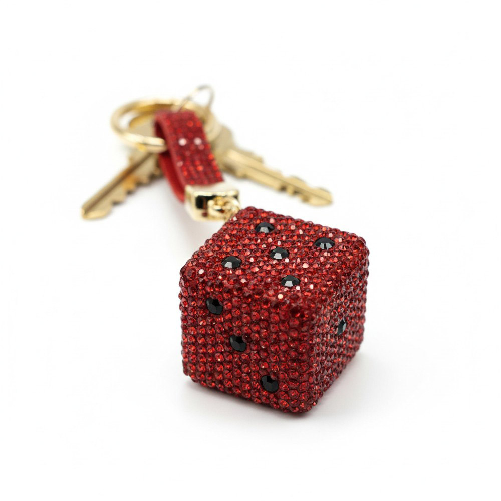 • A chic cube dice charm keychain with faceted sparkle detail that adds a stylish accent to keys, bags, or accessories. Compact yet eye-catching, it’s ideal for everyday use or gifting, combining modern design with a touch of glamour for effortless, polished flair.