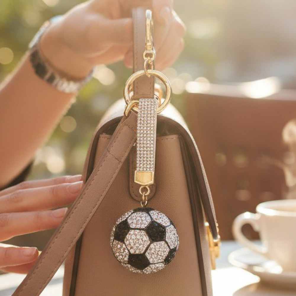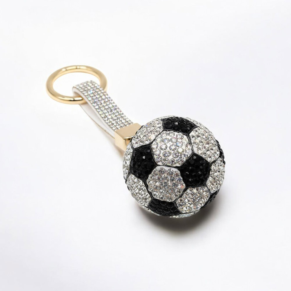 • A dazzling soccer ball charm keychain with faceted crystal detailing that brings sporty style to keys, bags, or backpacks. Lightweight and eye-catching, it’s perfect for fans and gifting alike, adding a fun yet polished accent to everyday essentials.