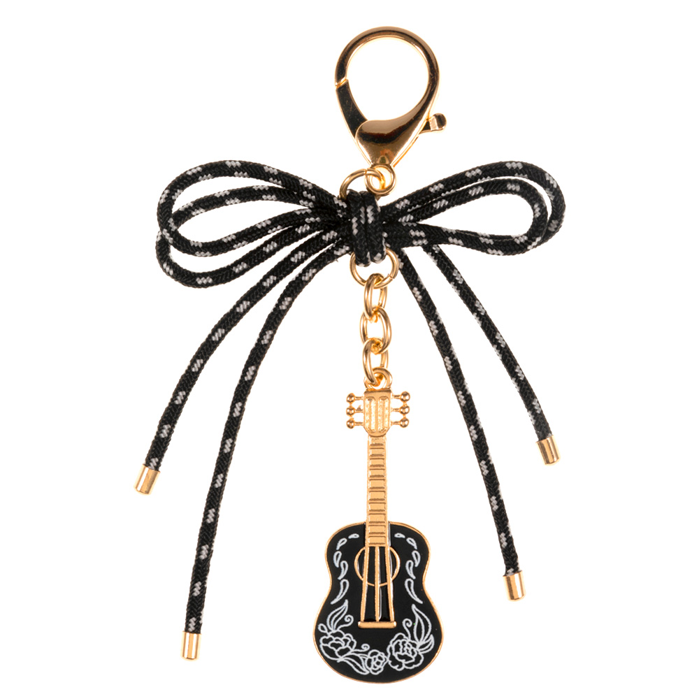 Decorative Bow Accent Enamel Guitar Drop Keychain Bag Charm