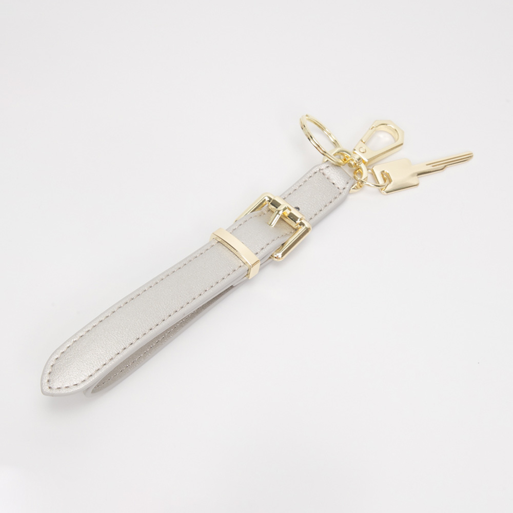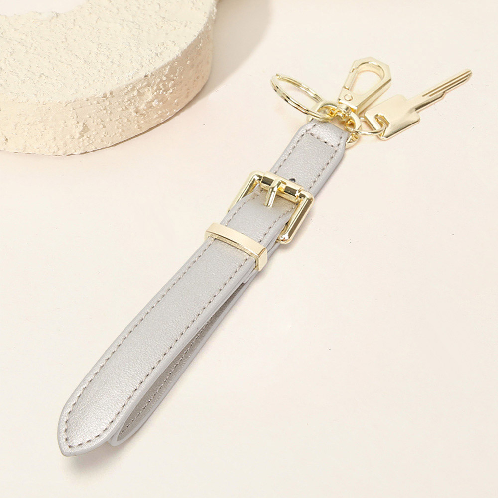 Faux Leather Key Accent Belt Wristlet Keychain Strap Bag Charm