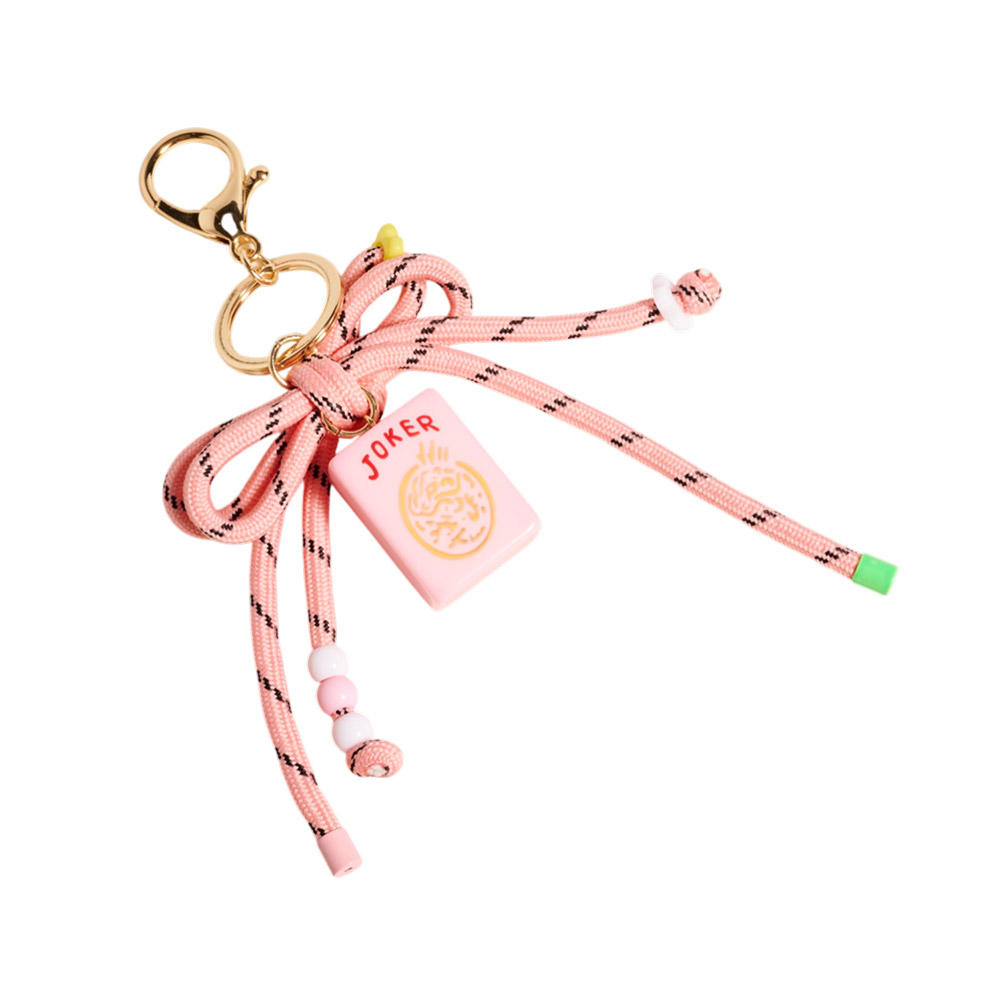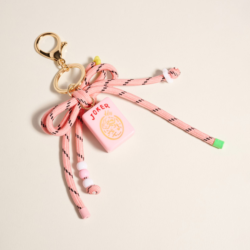 Mahjong Tile Drop Bow Knot Strap Keychain Bag Charm