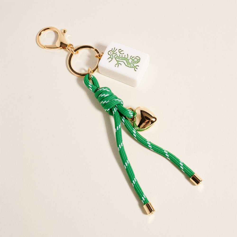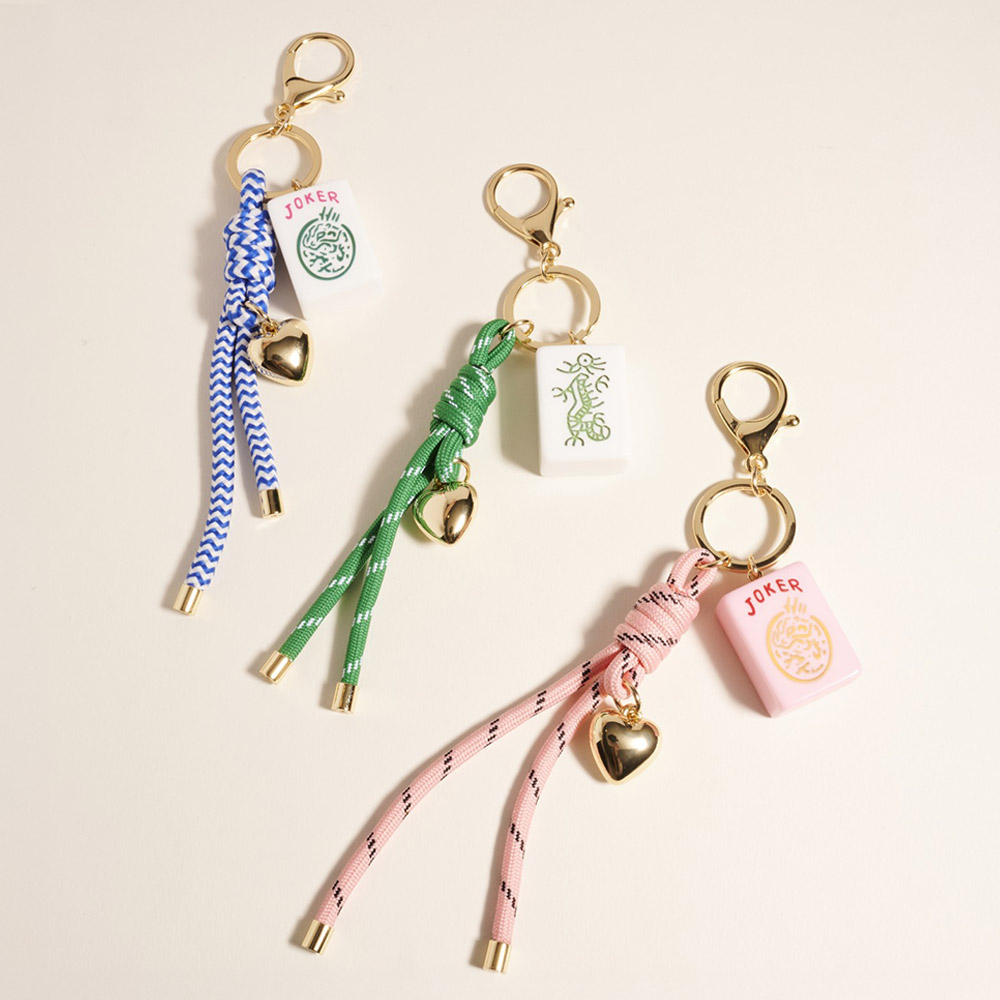 Mahjong Tile Heart Charm Knot Strap Drop Keychain Bag Charm