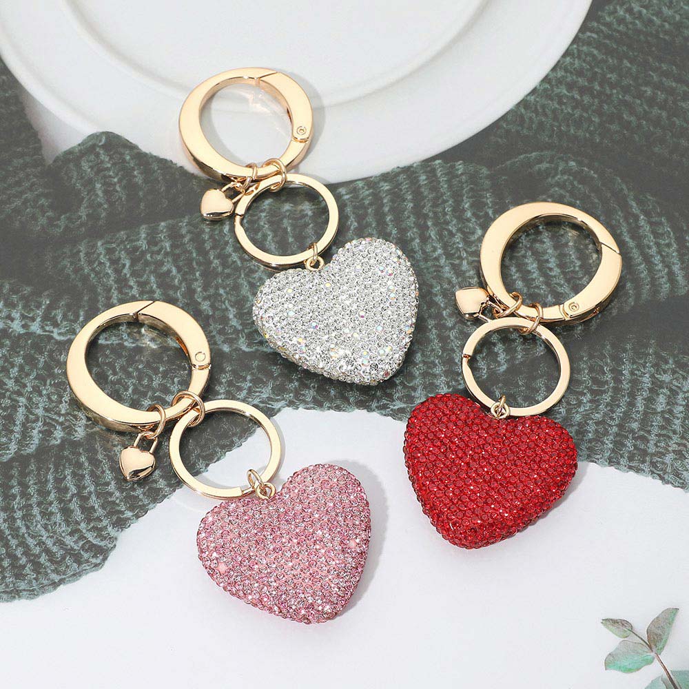 • Rhinestone heart keychain charm designed to add a sparkling statement to keys, handbags, totes, backpacks, and zipper pulls. A popular boutique accessory ideal for gifting, Valentine collections, impulse displays, party favors, and everyday use with a playful, eye-catching appeal.