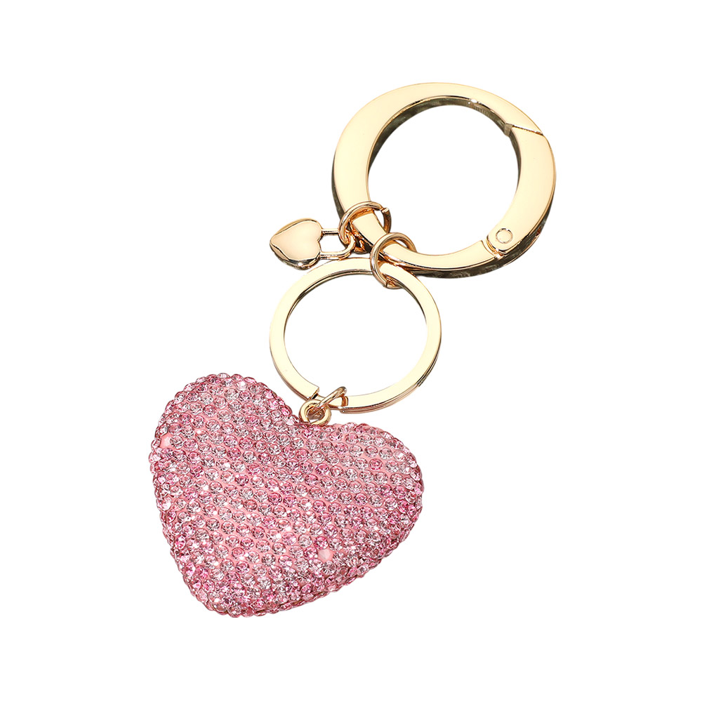 • Rhinestone heart keychain charm designed to add a sparkling statement to keys, handbags, totes, backpacks, and zipper pulls. A popular boutique accessory ideal for gifting, Valentine collections, impulse displays, party favors, and everyday use with a playful, eye-catching appeal.