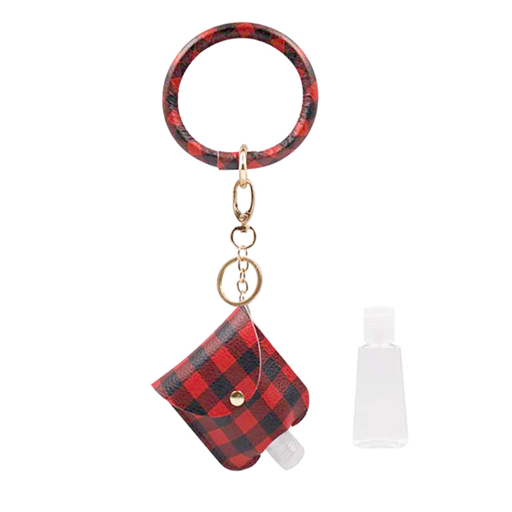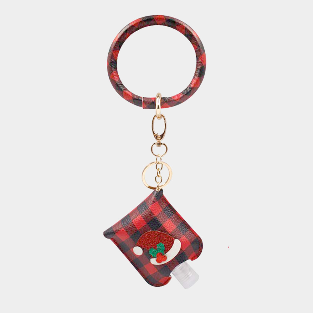 Details • Size : 2.75" D, 2.75" X 5.5" / 1fl oz (30ml) • Detachable • Snap Button Closure • Festive plaid hand sanitizer holder keychain featuring a cheerful Santa hat accent for stylish on-the-go convenience. Easily clips to bags, purses, or wristlets to keep sanitizer within reach, making it ideal for daily errands, travel, holiday outings, parties, and seasonal gift giving. • Lead and Nickel Compliant