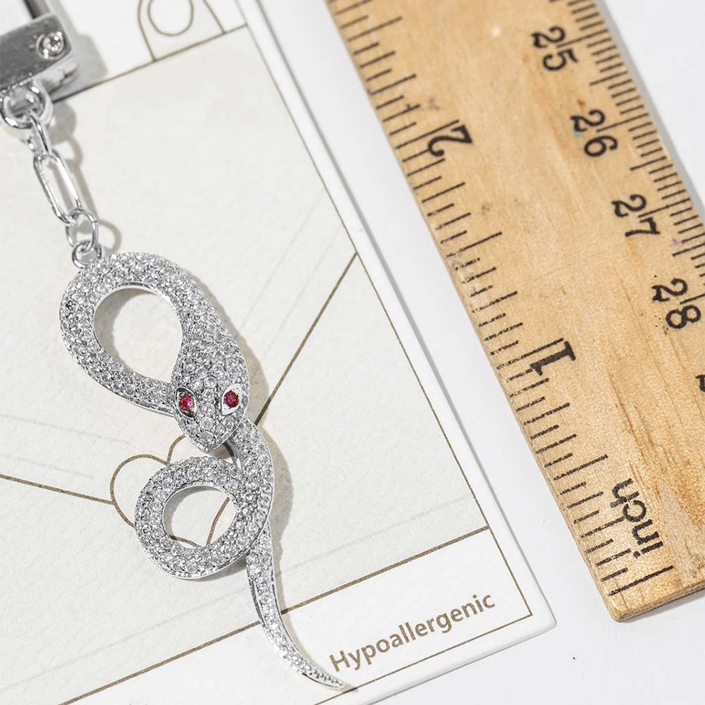 White Gold Dipped CZ Pave Snake Drop Keychain Bag Charm