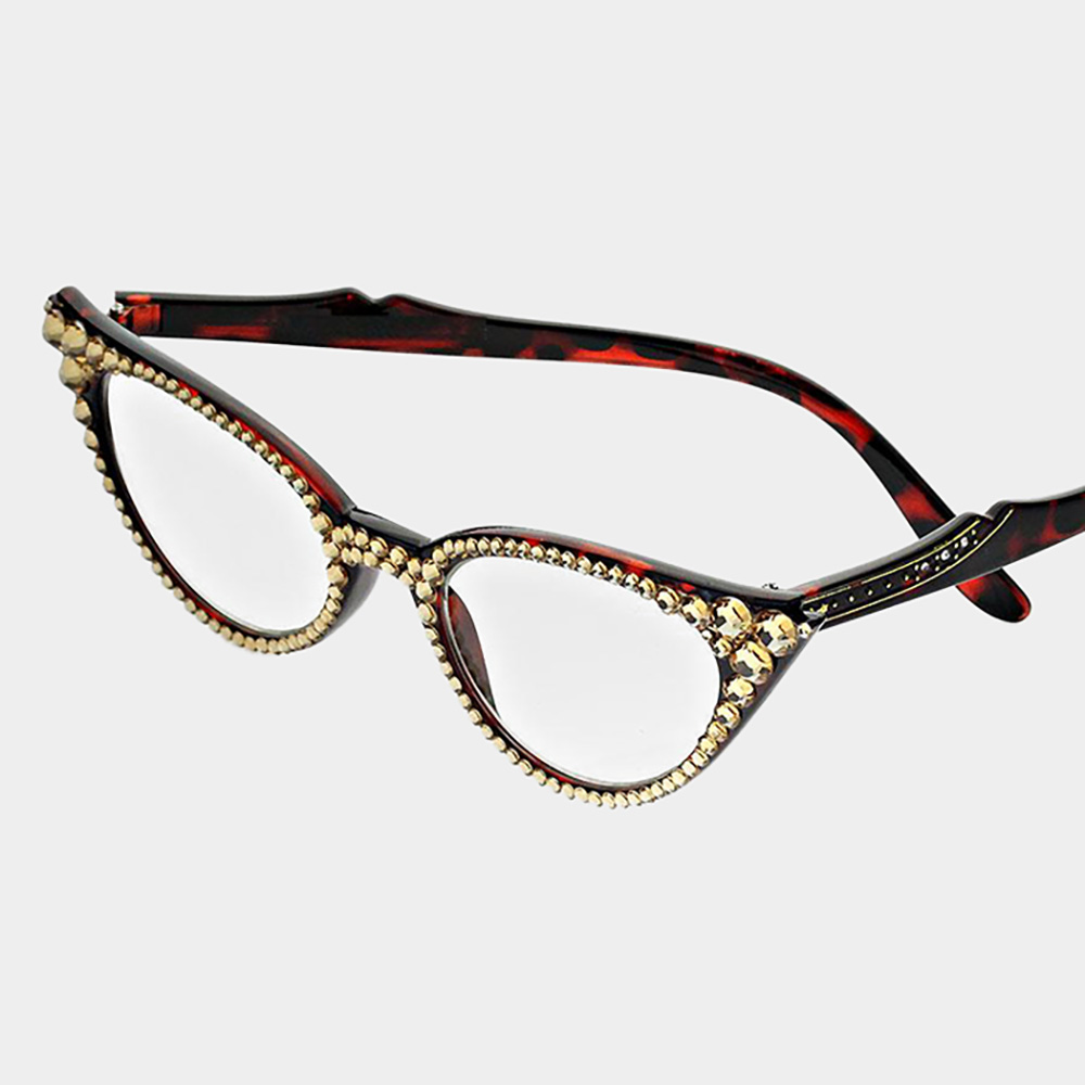 • Bold cat-eye glasses adorned with shimmering rhinestones for a glamorous statement look. Perfect for parties, costumes, themed events, or adding sparkle to everyday style, these frames bring vintage flair with a modern twist.