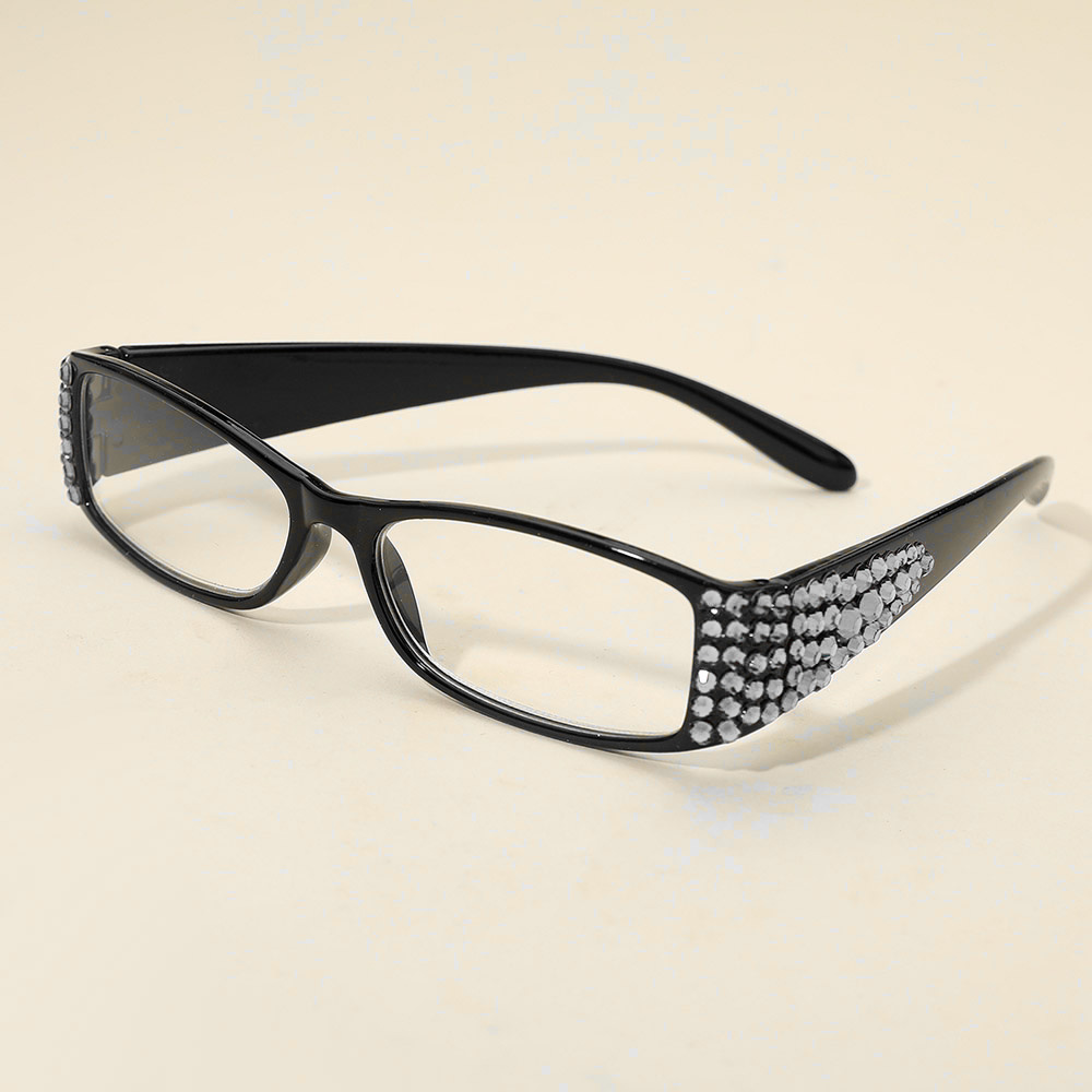 • Stylish reading glasses designed with sparkling embellishments along the frames. Offering both function and flair, they bring a touch of glamour to everyday eyewear while ensuring comfort and clarity for daily use.