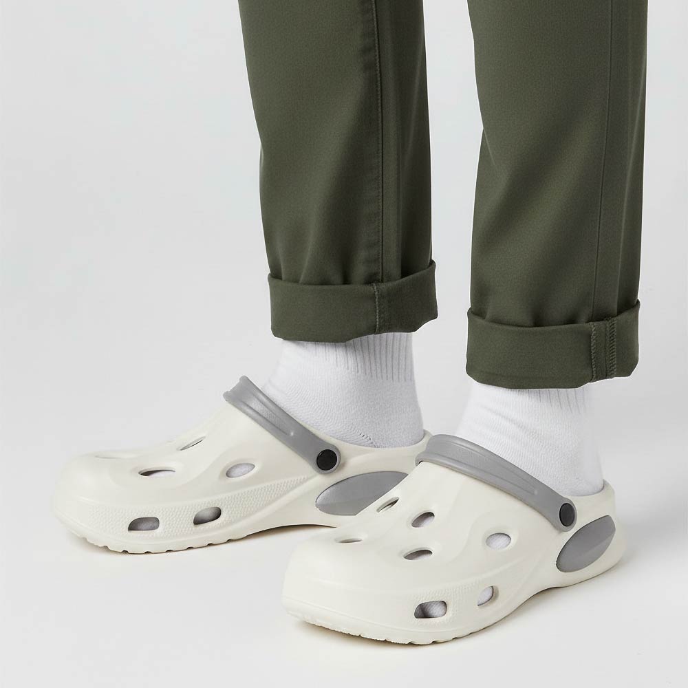 • Everyday clog style footwear featuring a breathable perforated design, cushioned footbed, and flexible heel strap for wear as a slide or secure fit. Lightweight and easy to style for casual days and travel.