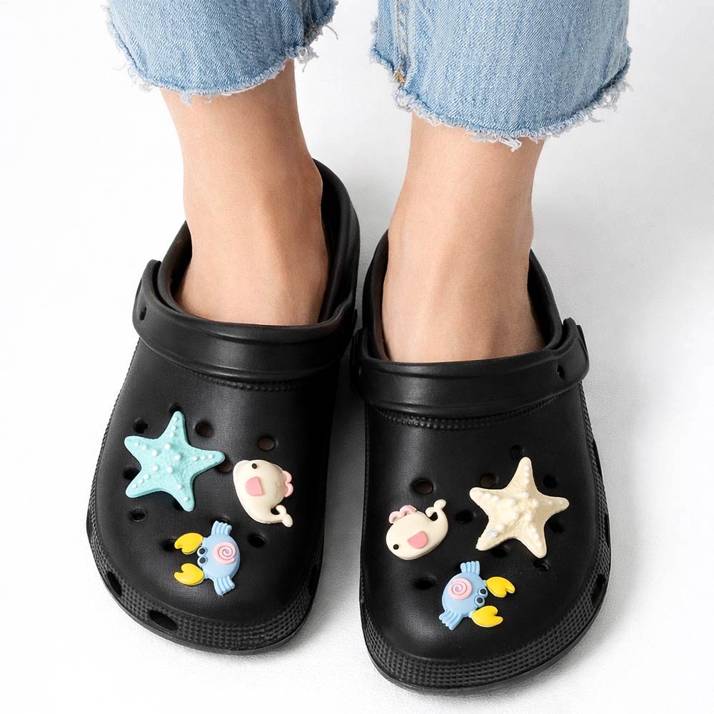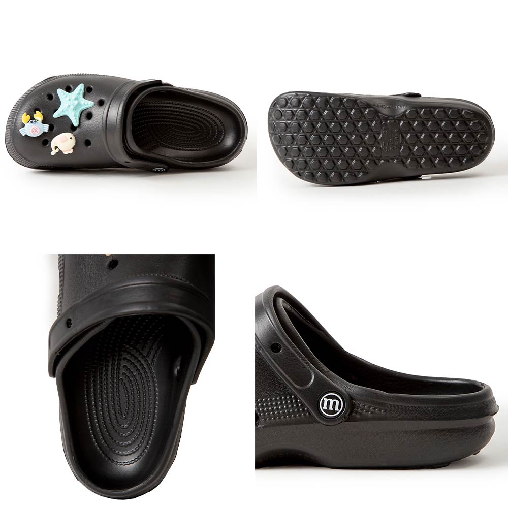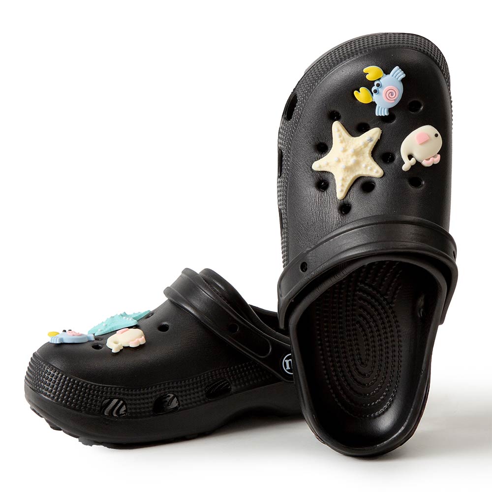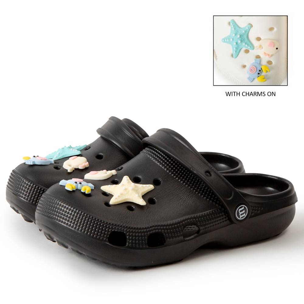 • Playful clog style footwear designed with fun decorative charms, breathable perforations, and a cushioned footbed for everyday comfort. Features a pivot heel strap for secure wear or easy slip-on styling, ideal for casual outings, travel, and relaxed daily looks.