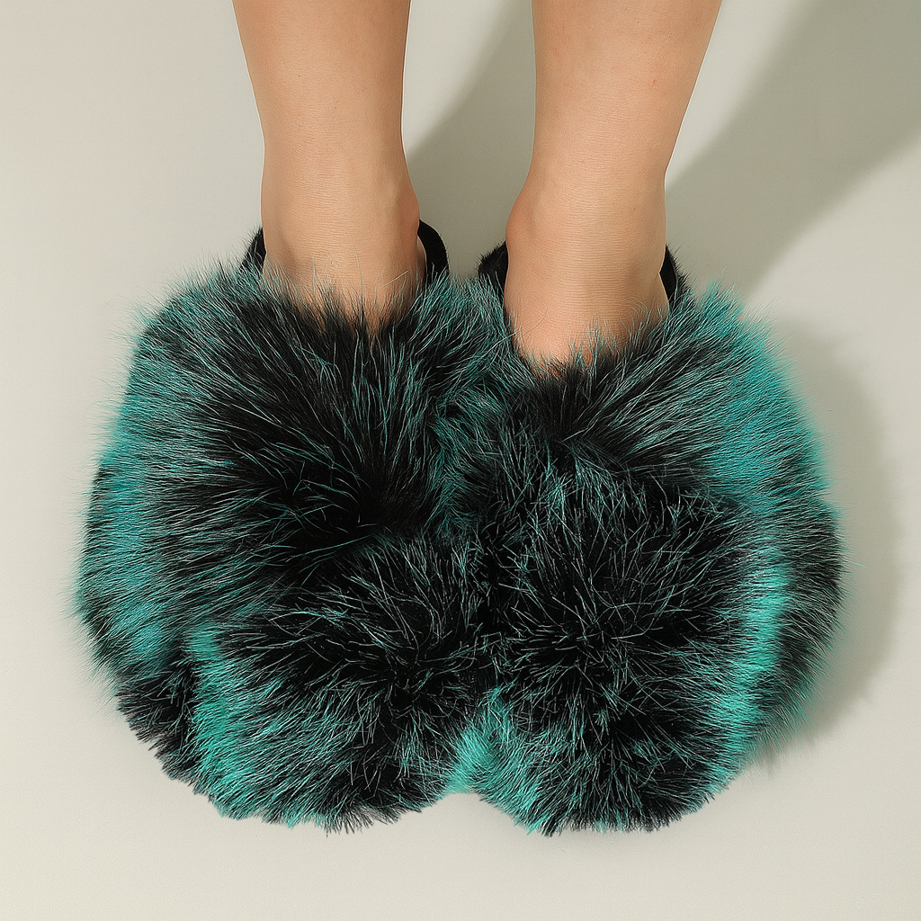 Details • Size : S/M/L/XL • Material : 100% Faux Fox Fur • Stay cozy and chic with these plush faux fur slippers featuring a soft, fox-inspired fluffy trim. Perfect for home lounging, they combine warmth, comfort, and style in one. Available in multiple sizes, making them a must-have addition to your relaxation wardrobe.
