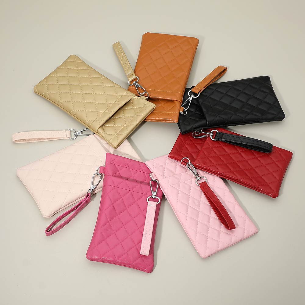 Faux Leather Quilted Sunglasses Phone Case Pouch Bag