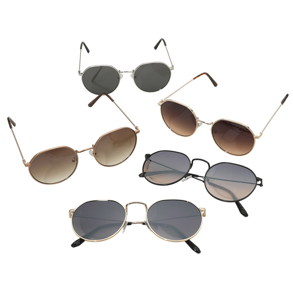 Details • Size : 5" X 2" • UV Protection • Round wire frame fashion sunglasses multipack designed for trendy everyday styling and resale versatility. Lightweight silhouettes offer a modern vintage look suitable for casual outfits, seasonal collections, and accessory displays with mixed shapes for added retail appeal.