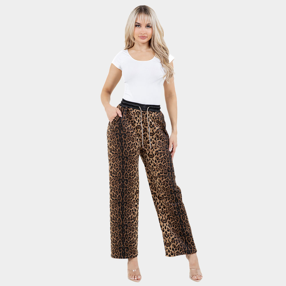Leopard Print Drawstring Wide Leg Pants