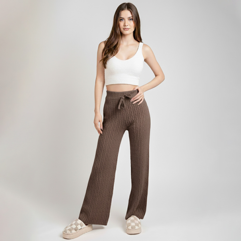 Solid Color Cable Knit High-Rise Wide Leg Lounge Pants