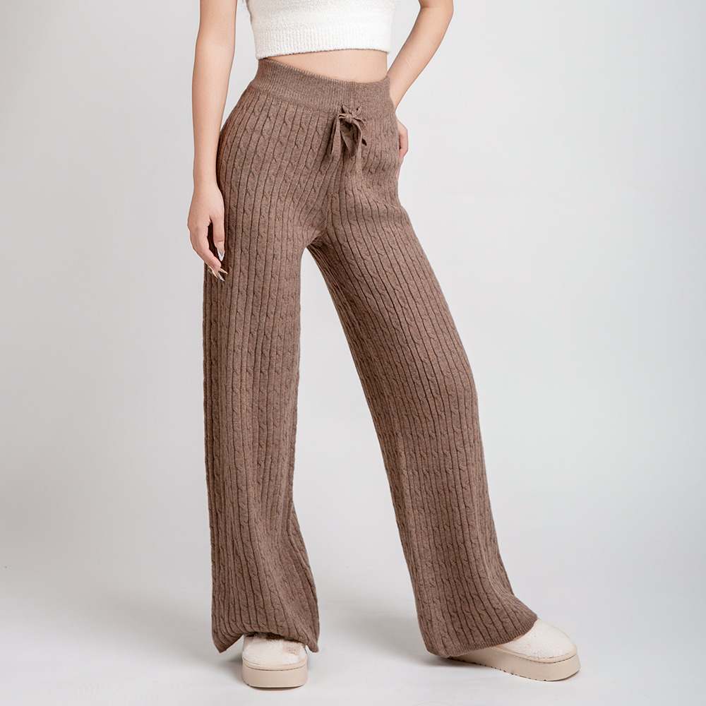 Details • Size : One Size • Material : 65% Polyester, 35% Acrylic • Features : Adjustable drawstring and elastic waistband • Care : Machine wash on the cole and gentle cycle, do not bleach, lay flat to dry or tumble dry on low, iron or steam on low, do not dry clean • Cozy cable knit lounge pants designed with a relaxed wide-leg silhouette and adjustable drawstring waist for a custom fit. Crafted for ultimate comfort, these soft knit pants are perfect for casual days, lounging at home, travel, or effortless everyday style. Pair them with sweaters, crop tops, or loungewear sets for a chic and cozy look you'll love to wear all season long.