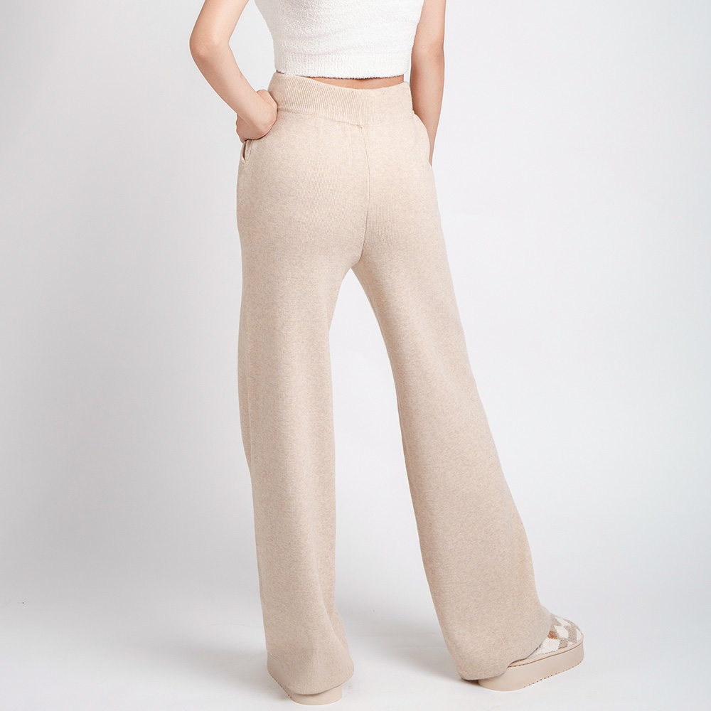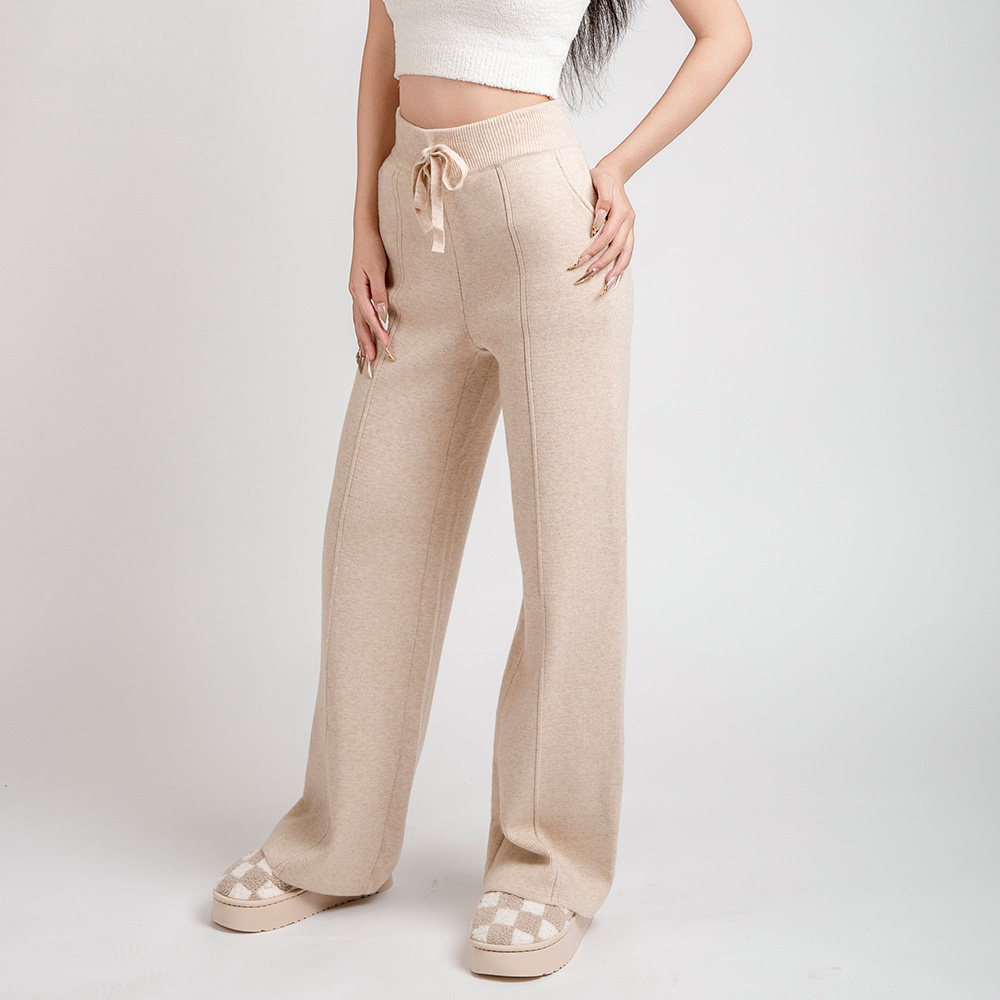 Details • Size : One Size • Material : 65% Polyester, 35% Acrylic • Features : Adjustable drawstring, elastic waistband and front pockets • Care : Machine wash on the cold and gentle cycle, do not bleach, lay flat to dry or tumble dry on low, iron or steam on low, do not dry clean • Soft knit lounge pants featuring a relaxed wide-leg fit and adjustable drawstring waist for maximum comfort and style. These cozy pants are perfect for casual wear, travel, lounging at home, or pairing with your favorite tops for an effortless everyday outfit. Designed with subtle seam detailing and practical pockets, they offer both fashion and function. Ideal for creating laid-back yet polished looks you can enjoy all season long.