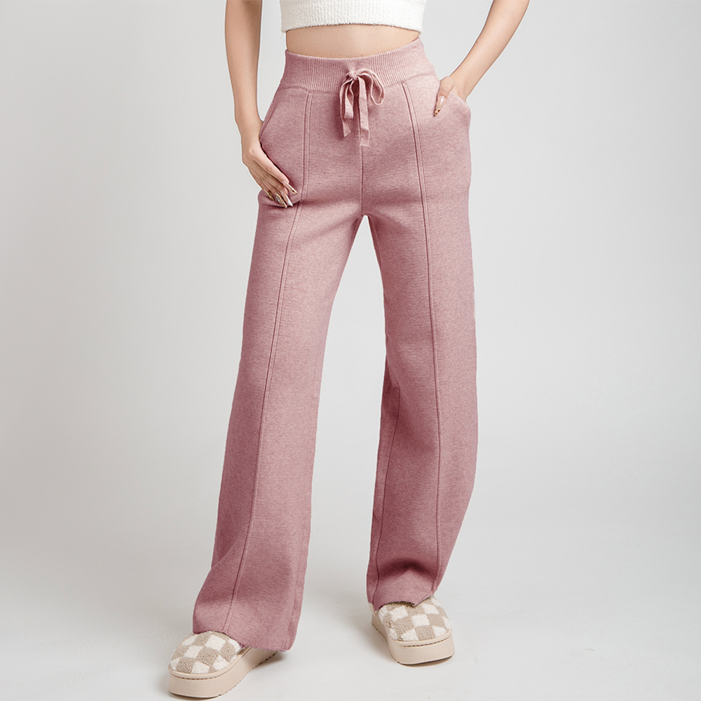 • Soft knit lounge pants featuring a relaxed wide-leg fit and adjustable drawstring waist for maximum comfort and style. These cozy pants are perfect for casual wear, travel, lounging at home, or pairing with your favorite tops for an effortless everyday outfit. Designed with subtle seam detailing and practical pockets, they offer both fashion and function. Ideal for creating laid-back yet polished looks you can enjoy all season long.