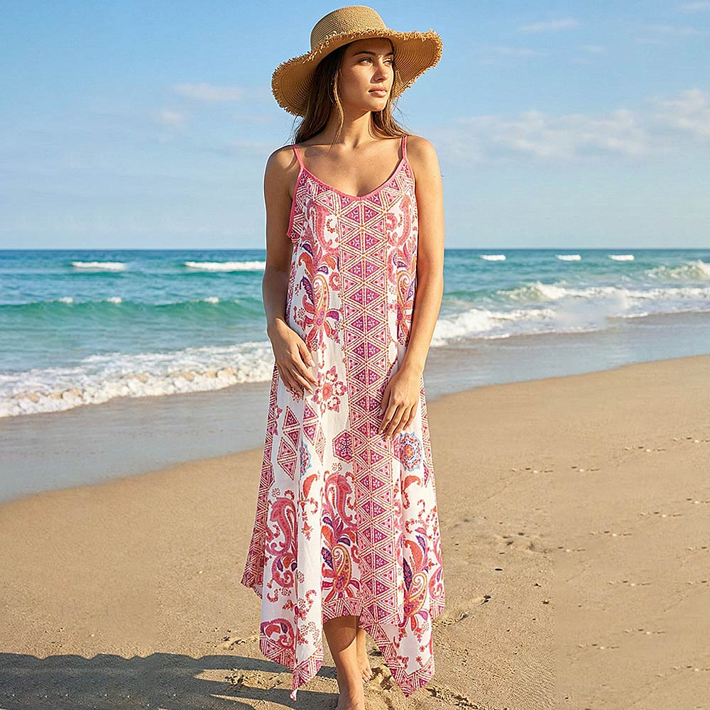• This boho-inspired beach maxi dress features a relaxed, flowy silhouette designed for effortless summer styling. Ideal for resort wear, beach vacations, cruises, and casual warm-weather outings, it layers easily over swimwear while offering comfort and movement. A versatile boutique-ready piece for seasonal collections, vacation wardrobes, and laid-back yet polished looks.