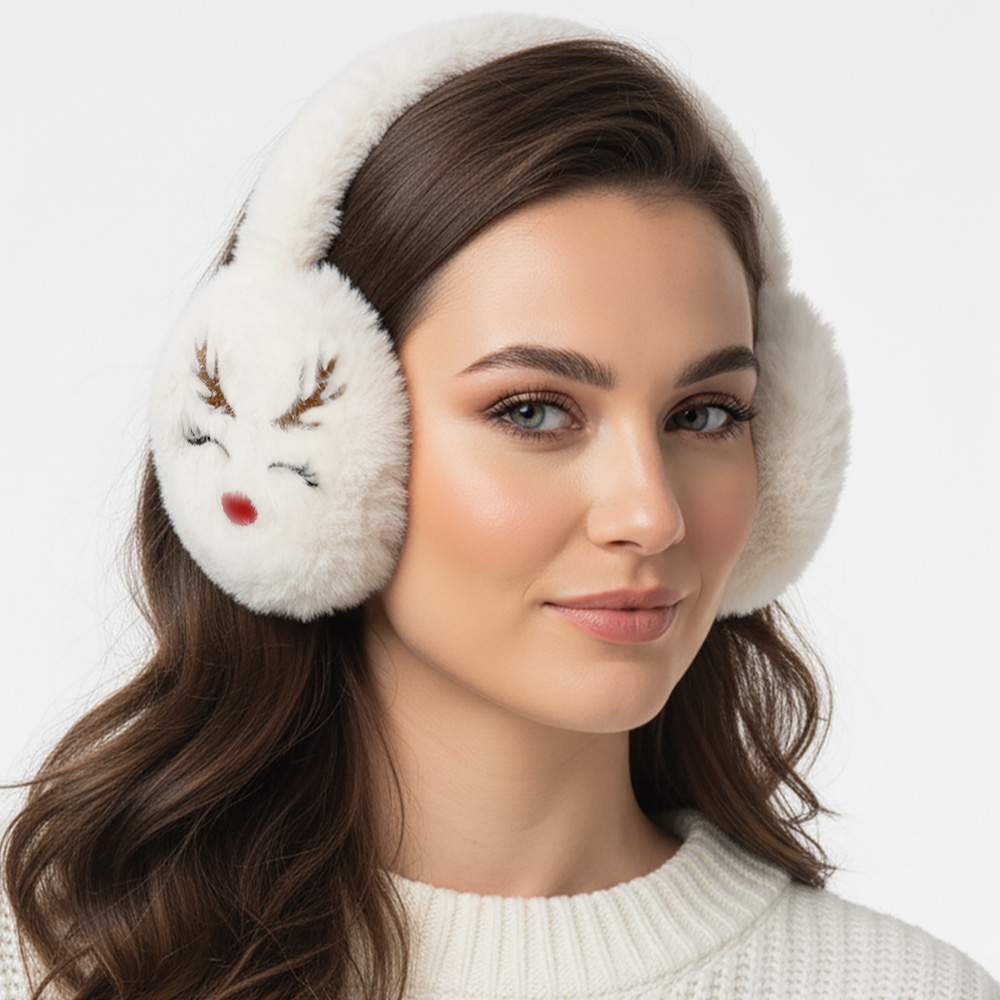 Details • Size : One Size • Embrace the festive spirit with these plush earmuffs featuring an embroidered reindeer design. Soft, warm, and stylish, they offer a charming seasonal accent while keeping your ears snug and comfortable during chilly winter days and outdoor adventures.