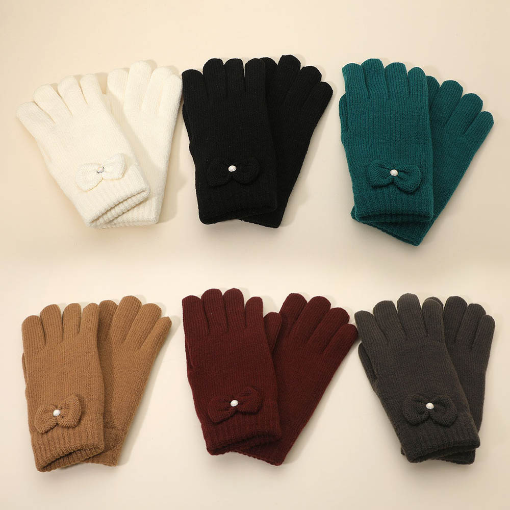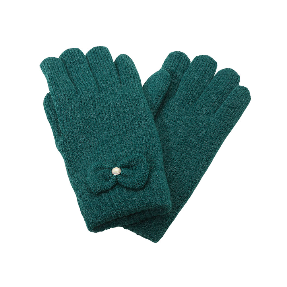 Details • Size : One Size • Shell : 80% Acrylic, 20% Nylon • Lining : 100% Nylon • Soft knit gloves featuring a charming bow detail and cozy full-finger coverage. Designed for warmth and style, these gloves offer a snug fit and elegant touch, perfect for cold-weather outfits and everyday wear during chilly seasons.