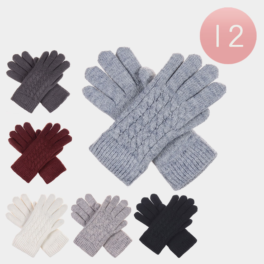 12Pairs - Faux Fur Lining Classic Cable Knit Gloves