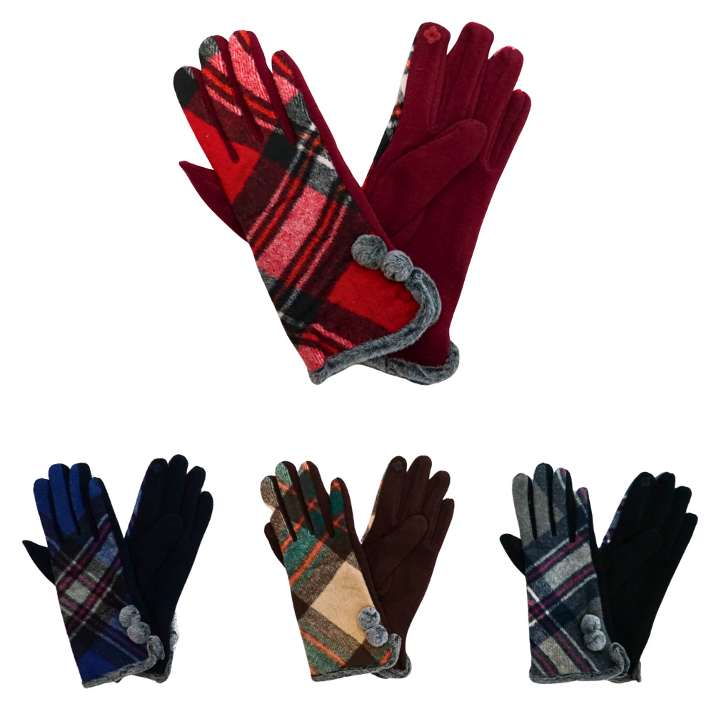 12Pairs - Plaid Pattern Pom Pom Detail Smart Touch Winter Gloves 12Pairs - Plaid Pattern Pom Pom Detail Smart Touch Winter Gloves 12Pairs - Plaid Pattern Pom Pom Detail Smart Touch Winter Gloves 12Pairs - Plaid Pattern Pom Pom Detail Smart Touch Winter Gloves