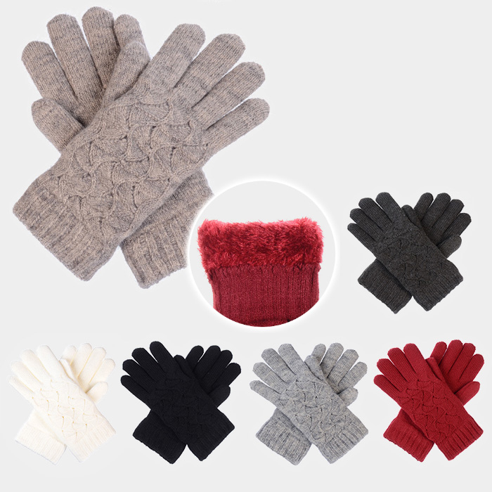 12PAIRS - Soft Knit Double Layers Fur Lining Gloves