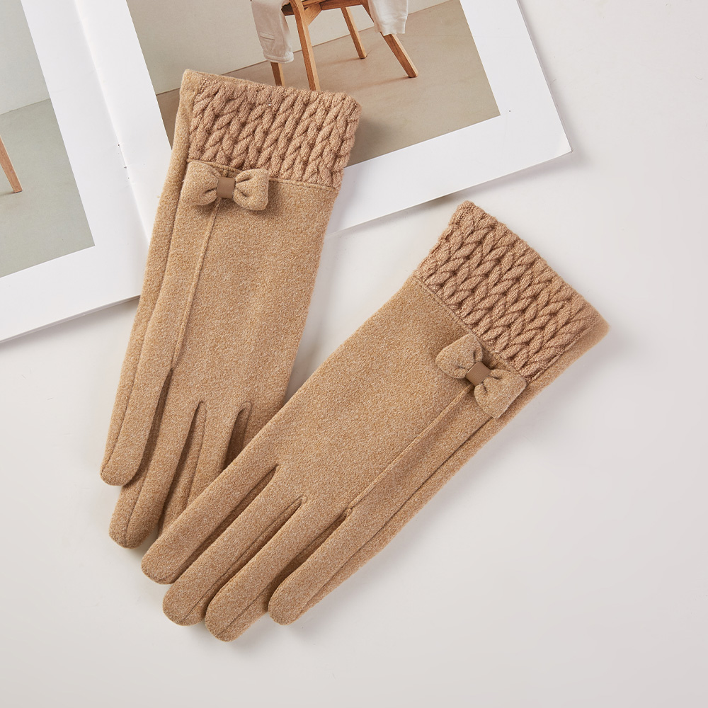 Details • Size : One Size • Smart Touch • Material : 100% Polyester • Cozy winter gloves featuring a textured knitted cuff and delicate bow accent for added charm. Soft and comfortable, these stylish gloves provide warmth while adding a feminine touch, perfect for casual wear or complementing dressy cold-weather outfits.