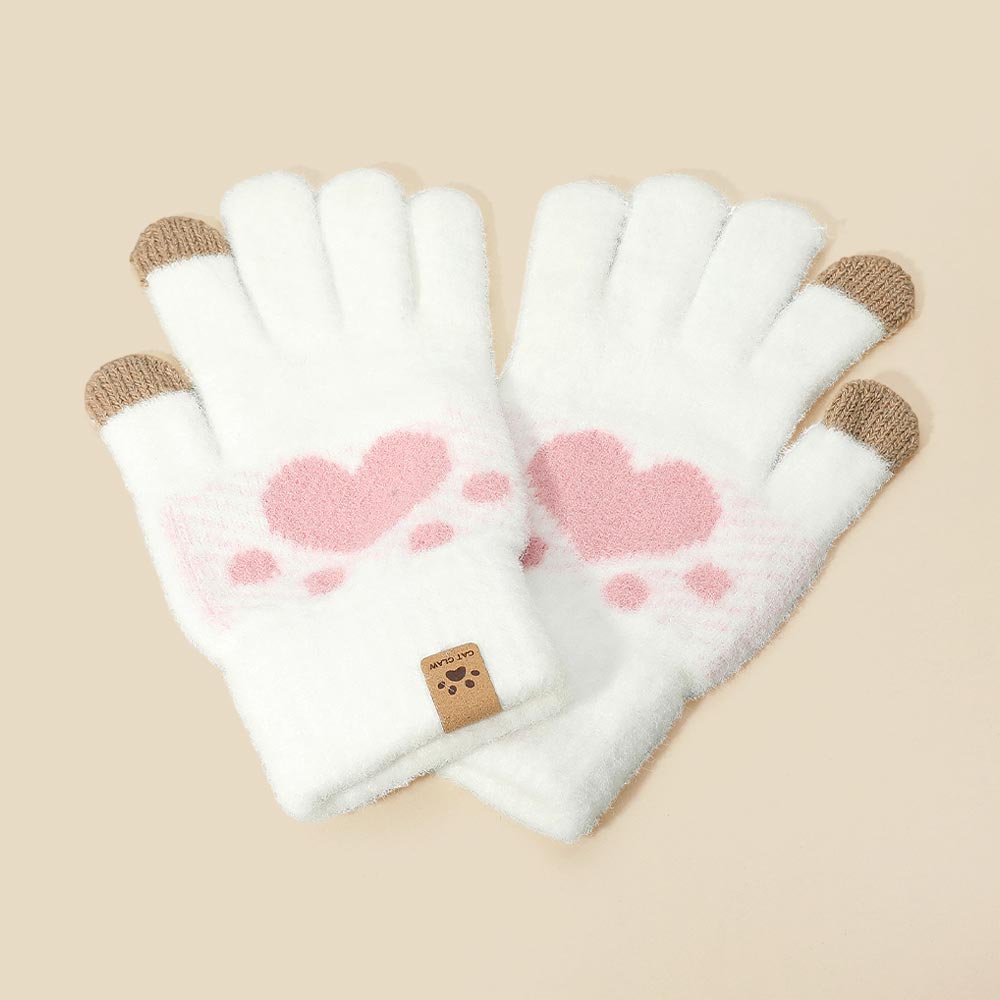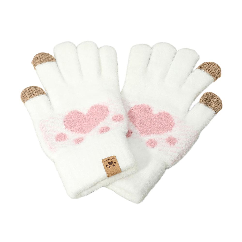 Details • Size : One Size • Material : 100% Polyester • Smart Touch • Stay warm and stylish with cat paw smart touch gloves featuring an adorable heart and paw print design. Made for comfort and functionality, these cozy gloves allow you to use your smartphone while keeping hands warm, making them perfect winter accessories for cat lovers and gift giving.