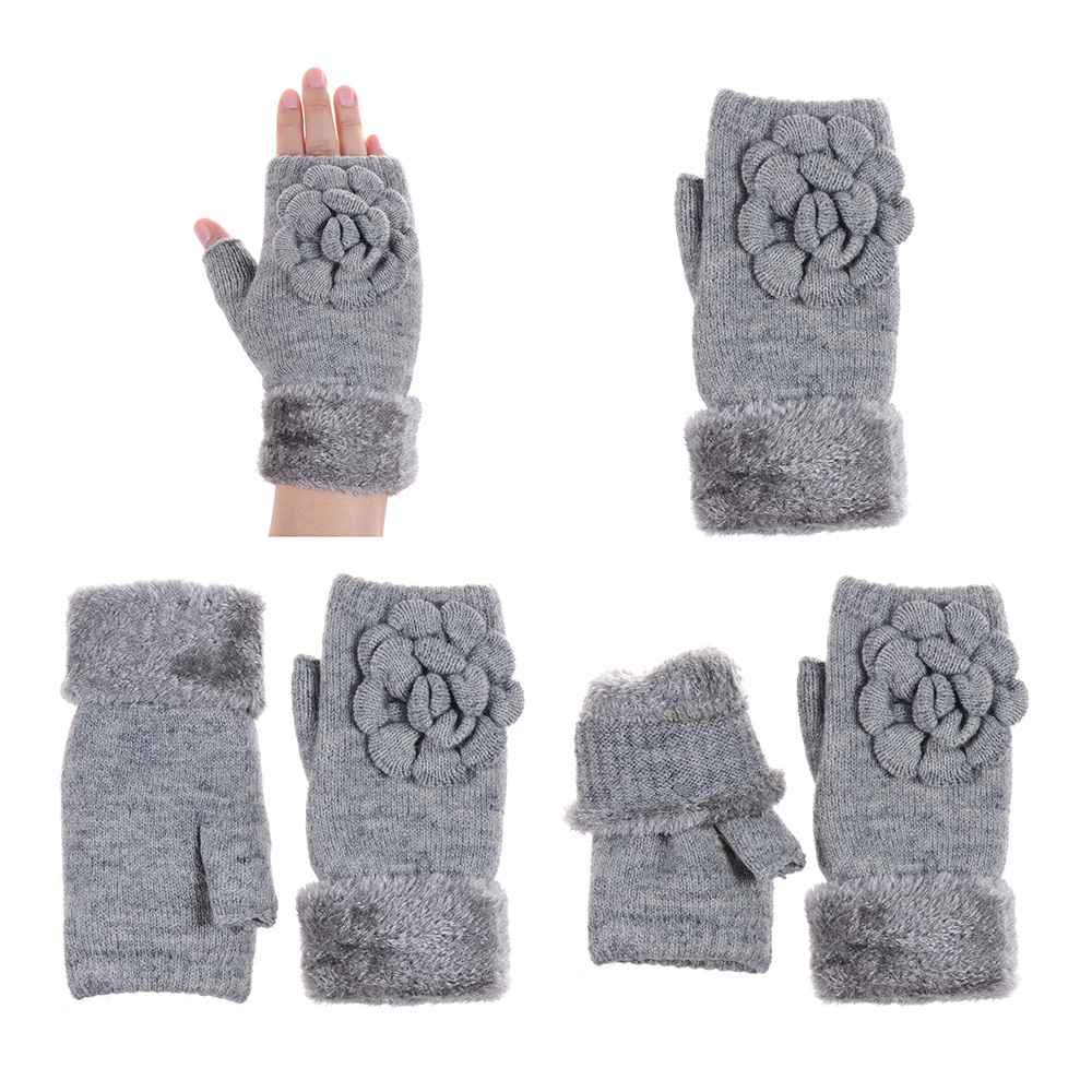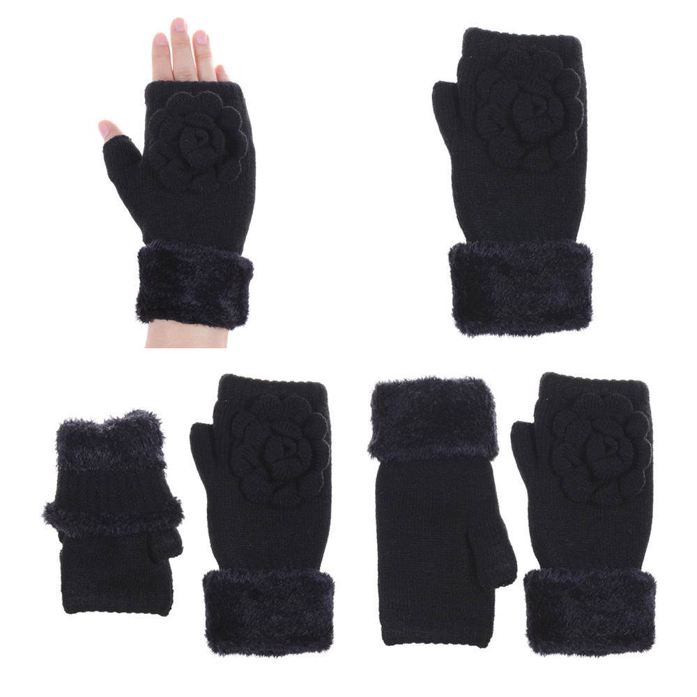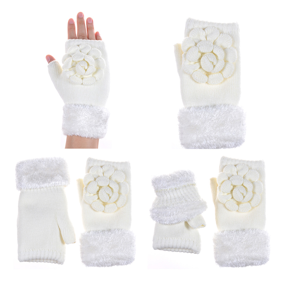 • Cozy knit fingerless gloves featuring a charming floral accent and soft cuff detail for added warmth and comfort. Perfect for keeping hands warm while allowing easy movement, these stylish gloves add a cute, elegant touch to your cold-weather outfits.