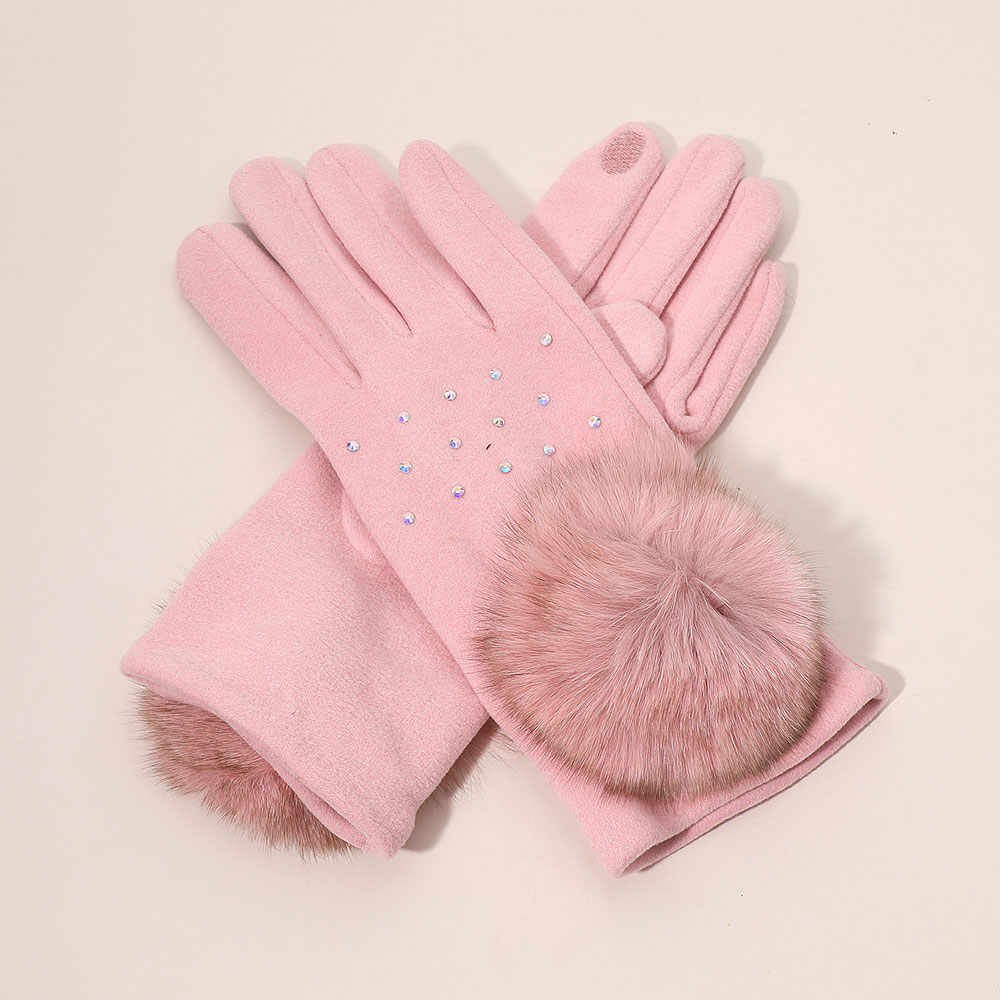 Faux Fur Cuff Pom Rhinestone Embellished Smart Touch Winter Gloves
