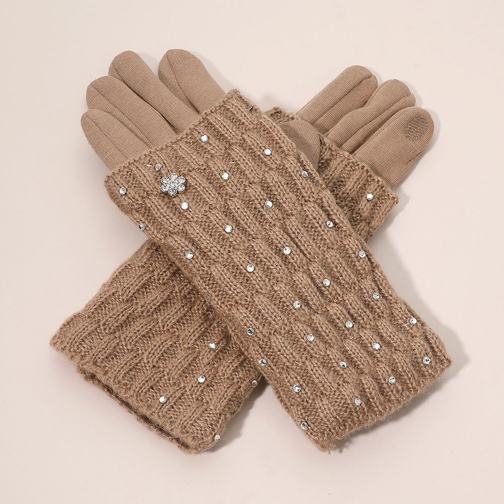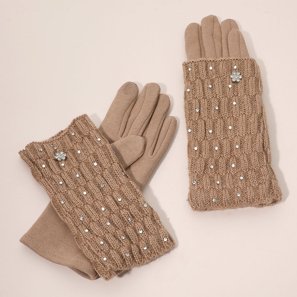 Floral Rhinestone Point Smart Touch Knit Winter Gloves
