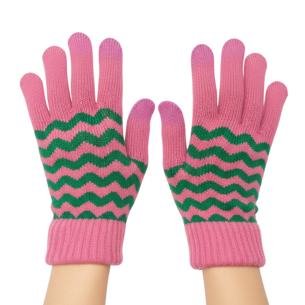 Details • Size : One Size • Material : 70% Polyester, 30% Wool • Smart Touch • Cozy knit touchscreen gloves with a bold wave pattern, perfect for winter days. Enjoy full mobile device use while keeping your hands warm and stylish with these functional and comfortable gloves.
