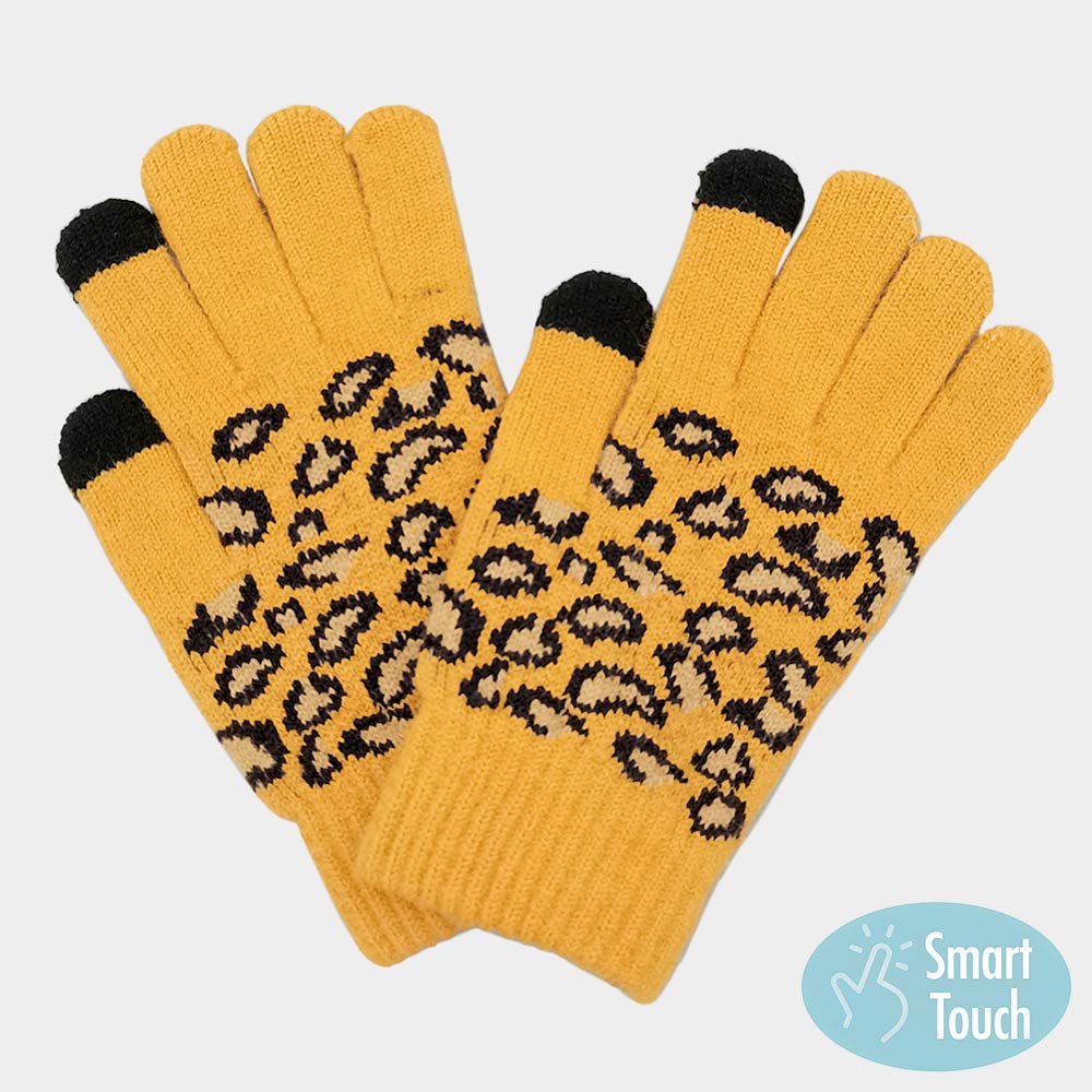 Leopard Patterned Knit Smart Gloves