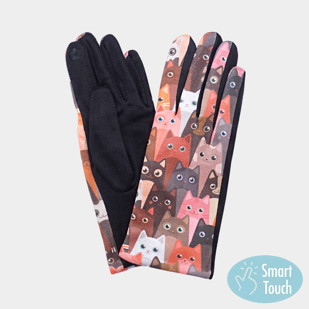 Details • Size : One Size • Material : 100% Polyester • Smart Touch • Add fun to cold-weather outfits with these smart touch gloves featuring a lively cat print. Designed for warmth and touchscreen compatibility, they combine comfort, style, and personality for everyday use or as a unique gift.