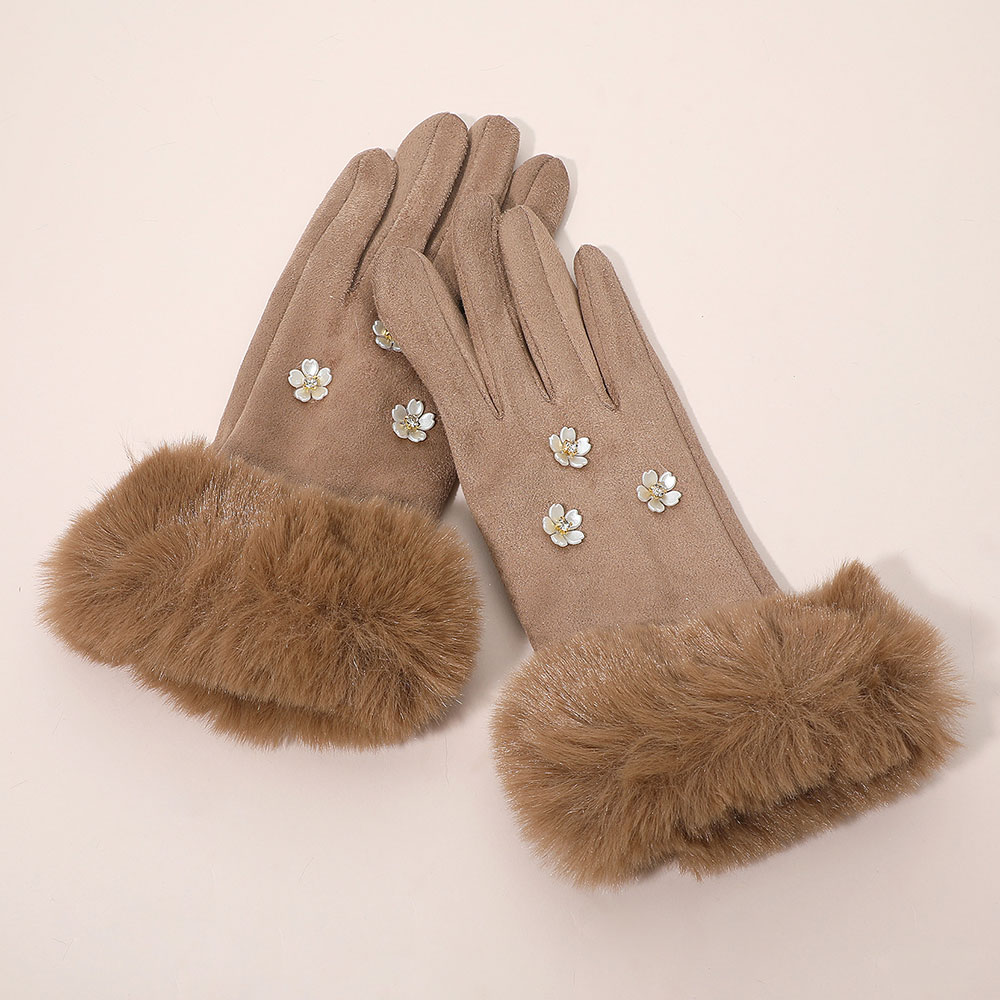 • Elegant smart touch gloves featuring faux fur cuffs and delicate floral embellishments for a chic, feminine touch. Designed for comfort and style, these gloves keep hands warm while allowing easy touchscreen use, perfect for everyday wear or adding flair to winter outfits.