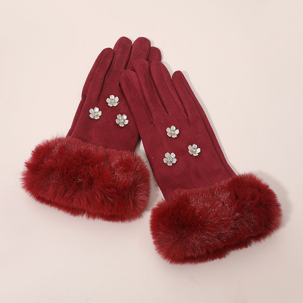 • Elegant smart touch gloves featuring faux fur cuffs and delicate floral embellishments for a chic, feminine touch. Designed for comfort and style, these gloves keep hands warm while allowing easy touchscreen use, perfect for everyday wear or adding flair to winter outfits.