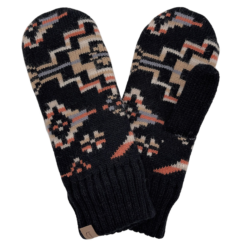 Ribbed Cuff Aztec Patterned Knit Winter Mittens
